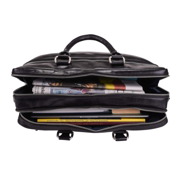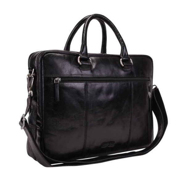 Auf die hochwertige Aktenmappe der Serie Cambridge können Sie sich verlassen! In den beiden Hauptfächern mit großzügigem Platz lassen sich zahlreiche Dokumente, Laptop oder Tablet sowie weitere Arbeitsutensilien bequem unterbringen. Neben dem Tragegriff gibt es einen Schultergurt, der für ein angenehmes Tragegefühl sorgt. Das robuste Rindsleder und das klare Design der Aktenmappe in Schwarz machen sie zum idealen Begleiter für den Berufsalltag.