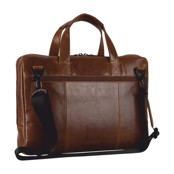 Entdecken Sie diese luxuriöse, braune Ledertasche im sportlichen Look, mit gepolsterten Fächern für Laptop und Tablet. Aus echtem Vollrindleder gefertigt, besticht sie durch ein Öl-Wachs Finish und den markanten Pull-Up-Effekt. Der Innenraum bietet Stauraum für Dokumente, Laptop, Tablet und Arbeitsutensilien, während separate Außentaschen Platz für zusätzliche Papiere bieten. Der praktische Trolley Loop auf der Rückseite ermöglicht einen sicheren Halt auf Rollgepäck. Dank kurzer Henkel und Schulterriemen ist diese Ledertasche vielseitig verwendbar und verleiht Ihrem Business-Look eine sportlich-elegante Note.