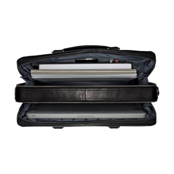 Auf die hochwertige Aktenmappe der Serie Roma können Sie sich verlassen! In den beiden Hauptfächern mit großzügigem Platz lassen sich zahlreiche Dokumente, Laptop oder Tablet sowie weitere Arbeitsutensilien bequem unterbringen. Neben dem Tragegriff gibt es einen Schultergurt, der für ein angenehmes Tragegefühl sorgt. Das robuste Pull-Up-Leder und das klare Design der Aktenmappe in Schwarz machen sie zum idealen Begleiter für den Berufsalltag.