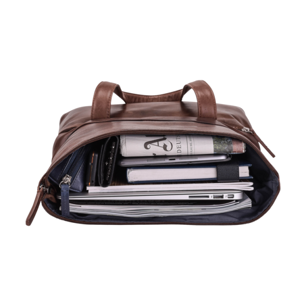 Hochwertige Business-Tasche in zeitlos-elegantem Design aus weichem Vollrindleder. Das geräumige Hauptfach bietet optimalen Schutz für Laptop und wichtige Geschäftsunterlagen. Das praktische Außenfach mit mehreren organisierten Innenfächern ermöglicht die sichere Aufbewahrung von Smartphone, Schreibutensilien und täglichen Essentials.