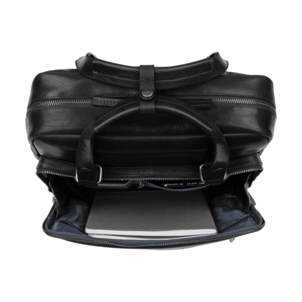 Der anspruchsvolle Business-Rucksack aus robustem Pull-Up-Vollrindleder mit großzügigem Hauptfach bietet optimale Funktionalität für den professionellen Einsatz. Die praktische Fronttasche organisiert Ihre Arbeitsutensilien übersichtlich. Im Inneren befindet sich ein speziell gepolstertes Fach für maximale Gerätesicherheit. Die verstellbaren Schulterträger gewährleisten individuellen Tragekomfort und ergonomische Lastenverteilung. Der zeitlose Business-Rucksack in Schwarz vervollständigt professionell Ihr Business-Outfit.