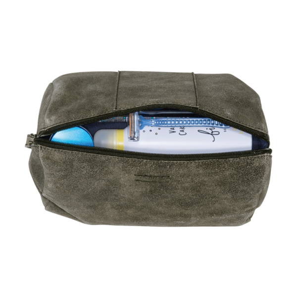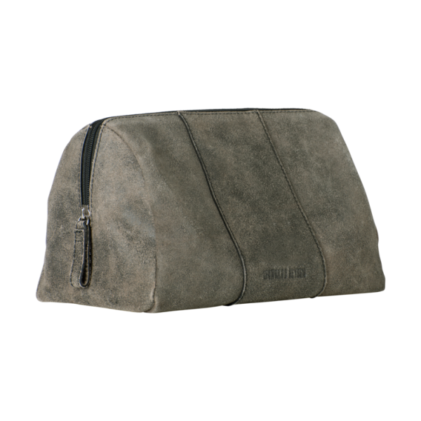 Ob für Wochenenden oder Geschäftsreisen, dieser elegante graue Kulturbeutel aus Vollrindleder ist Ihr idealer Begleiter. Er bietet Platz für Ihre wichtigsten Pflegeprodukte und lässt sich bequem in der Reisetasche verstauen. Ein großartiges platzsparendes Feature!