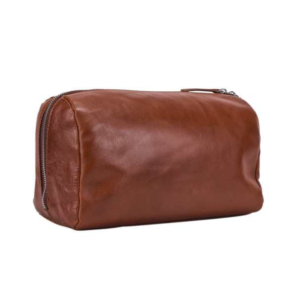 Der kompakte Kulturbeutel aus feinem Vollrindleder in bester Qualität. Er bietet viel Platz zum Aufbewahren verschiedener Pflegeprodukte. Exquisite Materialien machen den Kulturbeutel in Cognac zum langlebigen Begleiter auf Reisen. Ein großartiges platzsparendes Feature!