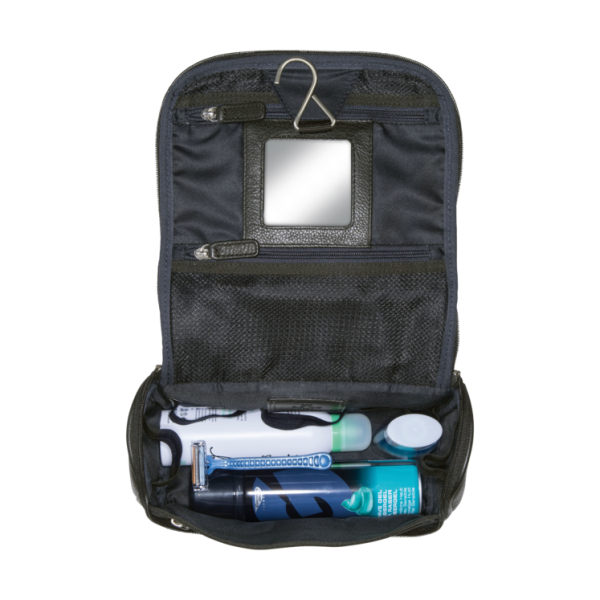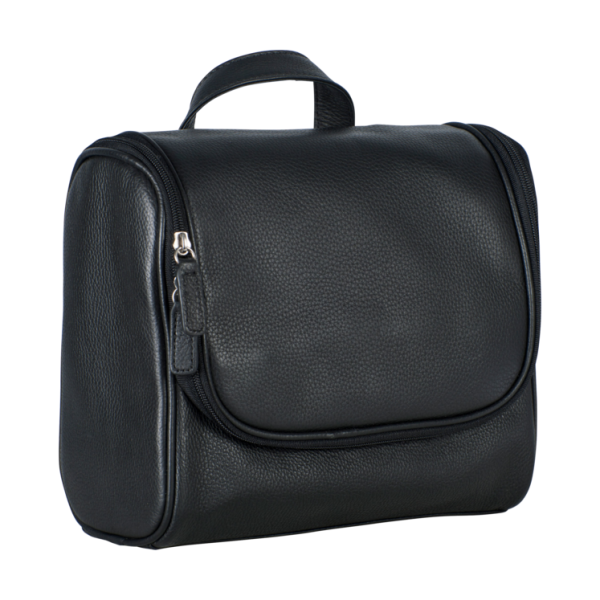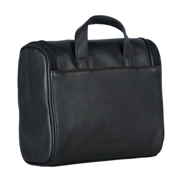 Der kompakte Kulturbeutel aus erstklassigem Vollrindleder in exzellenter Qualitätsverarbeitung. Die Tasche verfügt über einen robusten Tragegriff, ein geräumiges Hauptfach und mehrere praktische Steckfächer. Sie bietet optimale Organisation und übersichtliche Aufbewahrung für Ihre Pflegeprodukte. Durch den integrierten Haken lässt sich der Kulturbeutel in Schwarz platzsparend hinter Türen oder an Wänden befestigen – ein durchdachtes Stauraum-Konzept!
