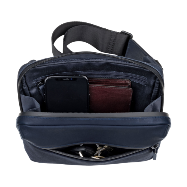 Optimale Organisation für den urbanen Alltag und Reisen: Alle wichtigen Dokumente und Wertsachen finden sicher Platz im Reißverschlussfach der blauen Gürteltasche. Die praktische Hüftposition gewährleistet maximale Bewegungsfreiheit und schnellen Zugriff. Gefertigt aus hochwertigem Vollrindleder überzeugt die Tasche durch langlebige Qualität und passt sich professionell jedem Business-Outfit an. Überzeugen Sie sich von der handwerklichen Verarbeitung.