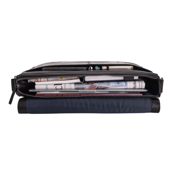 Die hochwertige Umhängetasche der Roma Serie bietet optimale Organisation für den professionellen Arbeitsalltag. Das geräumige, gepolsterte Hauptfach gewährleistet sicheren Transport für Laptop und Tablet mit schnellem Zugriff. Das praktische Einschubfach auf der Vorderseite ermöglicht übersichtliche Aufbewahrung weiterer Arbeitsutensilien. Der verstellbare Umhängegurt garantiert individuellen Tragekomfort und ergonomische Gewichtsverteilung. Die schwarze Business-Tasche vereint professionelle Eleganz mit moderner Funktionalität für Business- und Business-Casual-Anlässe.